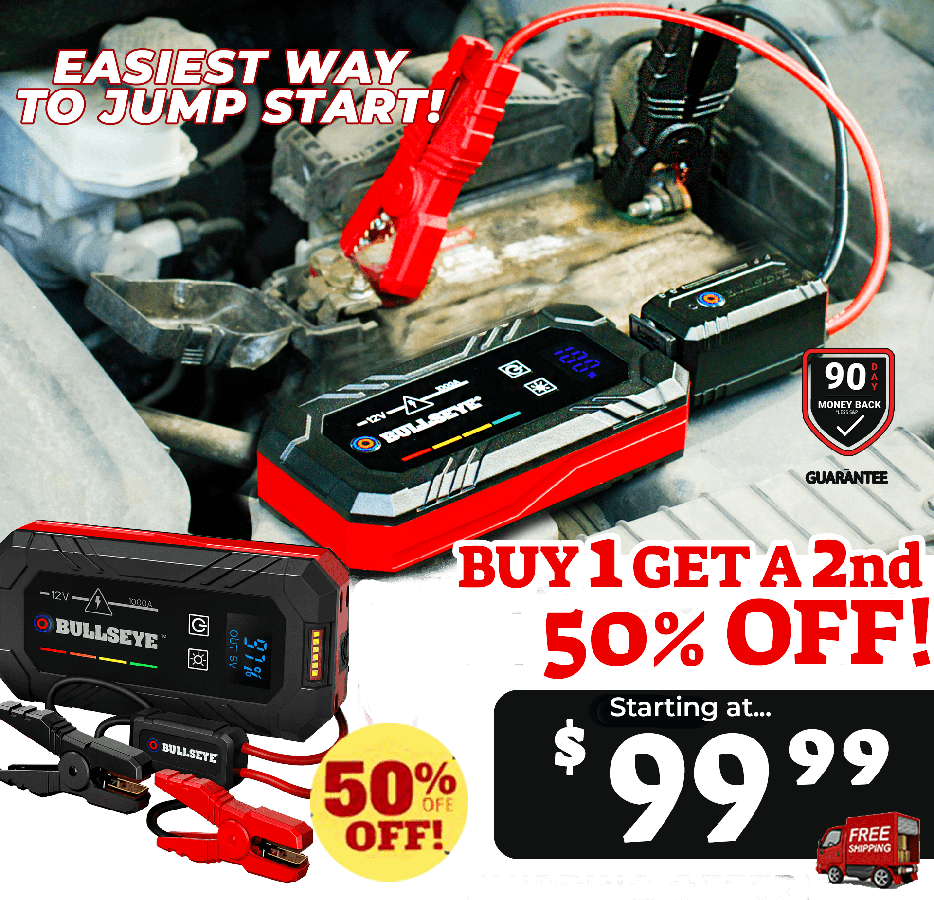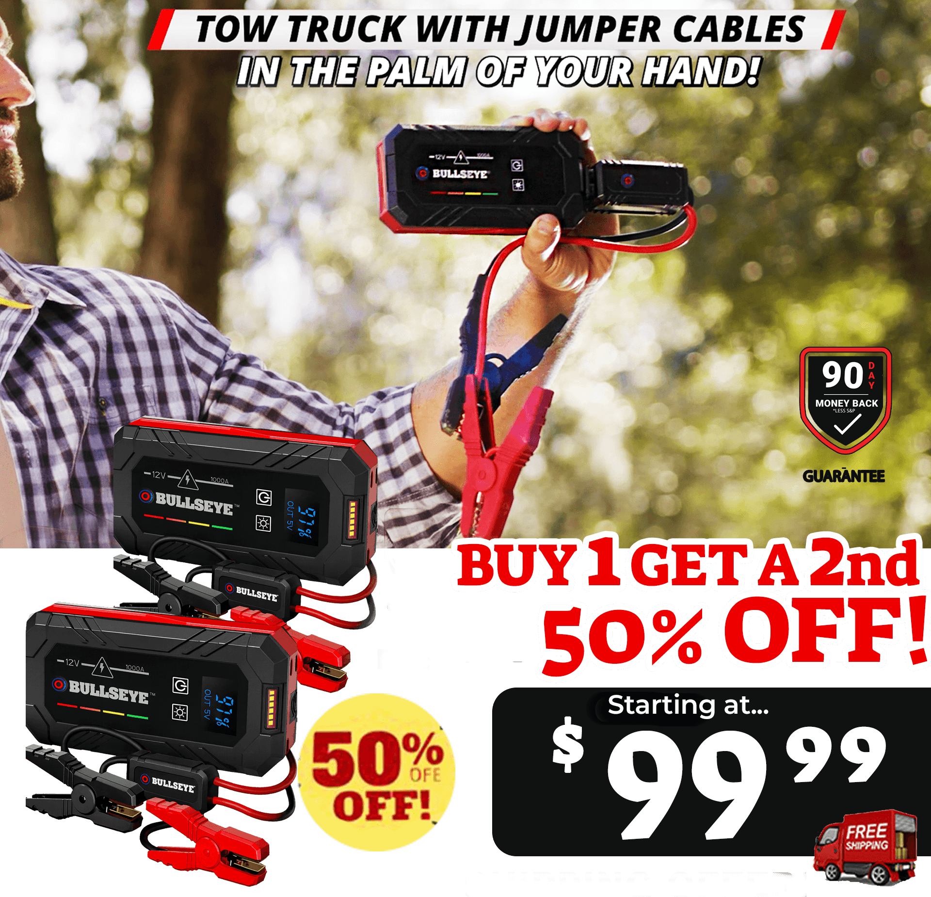 We're so confident you will love Bullseye Jump Starter that you can try it for 90 days! If you're not satisfied with Safety XL, just send it back!